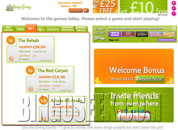 Bingo Giving … with Gus the Giving Gorilla is another new internet bingo site to launch using the same Dragonfish software as used by some of the most successful sites out there including Foxy Bingo, Posh Bingo, Wink Bingo and Cheeky Bingo.